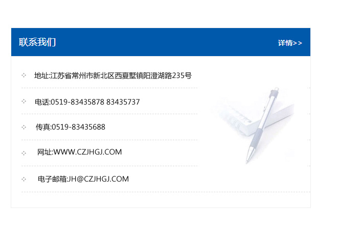 地址:常州市新北區友邦商務大廈1幢16、17層  電話:0519-85101652  傳真:0519-85112595  郵編:213022  網址:www.cz-jiayue_cn.dgmzlight.com  郵箱:xiajifengaa@163.com